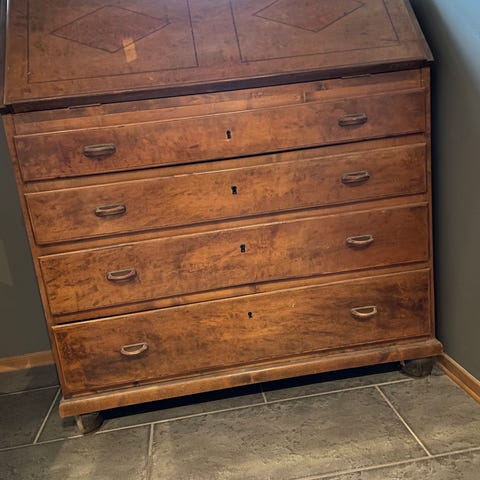 Hyggelig, gammel skatoll. Får ikke skuffene ut akkurat nå, da den står i garasjen. Den fungerer helt fint når den kommer inni huset igjen:)
