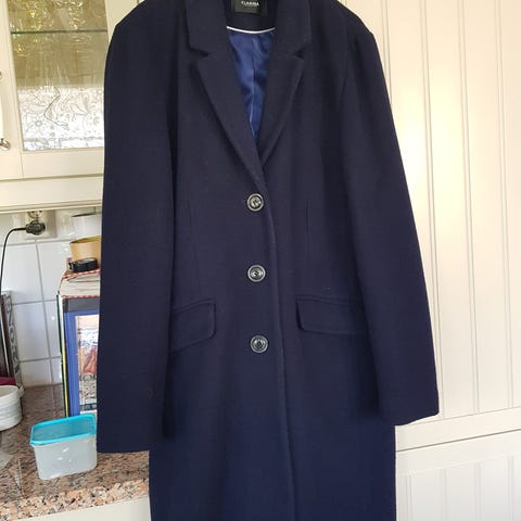 HUGO BOSS kåpe. Material: ul, mørk blå, Kashmir. Modell Cavinella. Størrelse 42, ( fast det står 44; det er lite mindre størrelse enn 44). Nypris var 9800 kr. Kjøpt hos PhilippaK på Nordiska Kompaniet i Stockholm.
