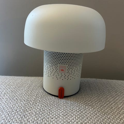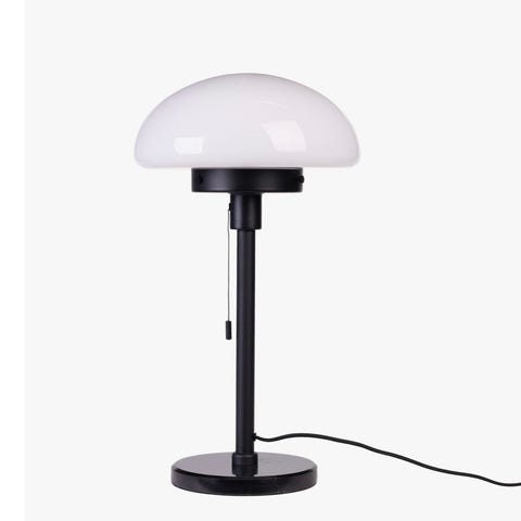 Eksklusiv munnblåst bordlampe i farge hvit-svart. Bredde 30 cm, høyde 20 cm og dybde 20 cm, lyskilde E14 (liten) sokkel. Pris kr 700, ny pris er kr 1500.
