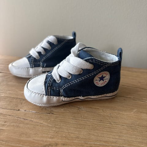 Selger disse da de ikke passer lenger. Søte rosa sko som imiterer converse. Stripete/rutete på innsiden. Merke Kennedy sko. God og stabil såle til små barn som skal lære seg å gå. Kan snøres og gjemme snøret under "skotunga" som festes med en knapp.