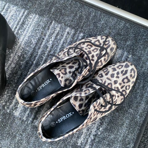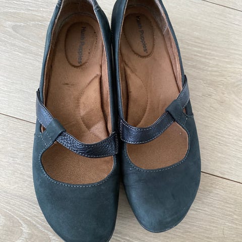 Semsket sko i lys brun/sennepsgul farge. Brukt to ganger.