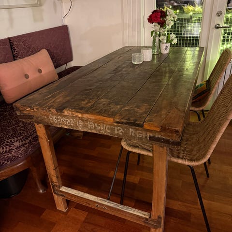 Bruksområdene er mange, ikke bare som et stilig spisebord, men også som eventuelt en større sjenk. Eller som avlastningsbord i kjeller/verksted/garasje. Eller i baren! Dessverre får ikke dette plass hos meg, lenger. Står på hytta, men er du interessert i å kjøpe, kan jeg få brakt det til Oslo.