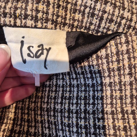Brunt høstskjørt fra Claire. Rekker til rett under knærne. God kvalitet, med innslag av ull. Fint rutemønster.