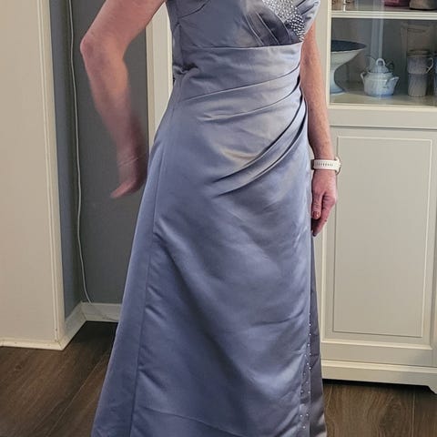 Selskapskjole selges, brukt kun en gang i bryllup. Kommer med tynne seler som han festes, og sjal.
