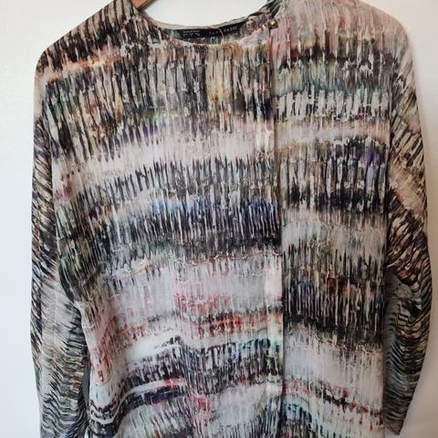 Helt nydelig topp i nydelige farger. Mykt deilig kvalitets stoff. Vil si det er en stor str S-«liten» M.