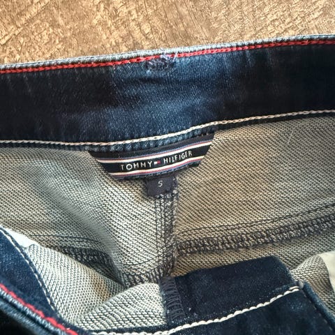 Går til rett nedfor knærne ingen flekker el hull. Lite brukt.