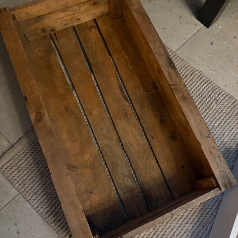 Selger en eldre bærkasse /ryggsekk, trekasse fra 20/30 årene....det er 2 rom i den ..koselig og Veldig dekorativ ,.kan hentesi Kristiansand.
