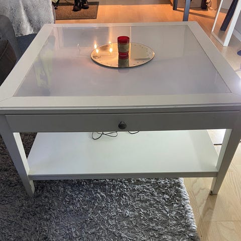 Stabilt og ellers helt massivt hvitmalt trebord.