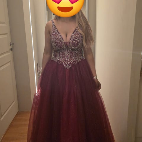 Selger videre min fine ballkjole, da jeg ikke har behov for den lenger og håper noen andre får mer bruk for den.