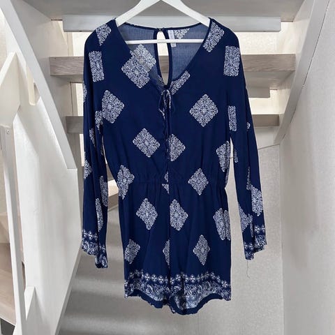 Behagelig jumpsuit. Selges fordi jeg ikke bruker den lenger. Fargen er mørk grå-blå.