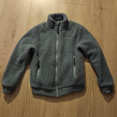 Pent brukt fbleecejakke fra Color Kids med en glidelås. Den er laget av resirkulert materiale.
