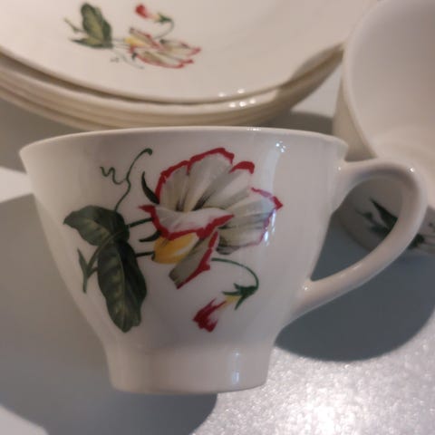 ( kan følge med)4 kopper med nagg, to skåler og fire kaffe skåler