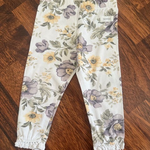 Kjempedeilig softshell bukse fra Wheat, helt ny med lappen. Mønsteret er Flower Rings, str.104