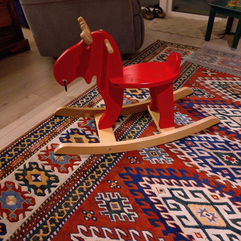 Med sin hvite pels, myke brune øyne og lysegrå horn vil han hjelpe barnet ditt med å utvikle balanse samtidig som det har det gøy. Den kan også brukes som et vakkert dekorativt objekt på barnerommet.