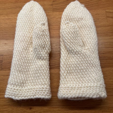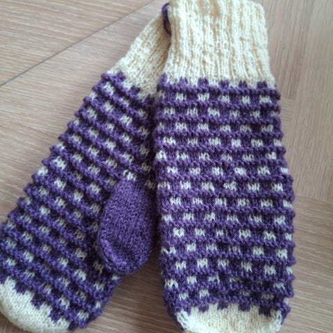 Jeg kjøpte disse flotte ullvottene i en strikkebutikk i Fredrikstad til rundt 400 kr. Jeg har aldri brukt dem og selger dem derfor videre.