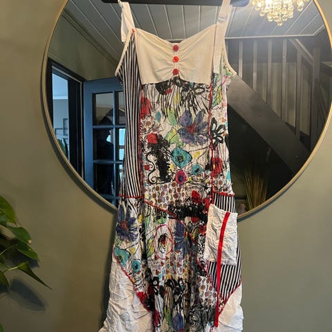Nydelig lakserød kjole str L m/splitt selges hbo 100,-