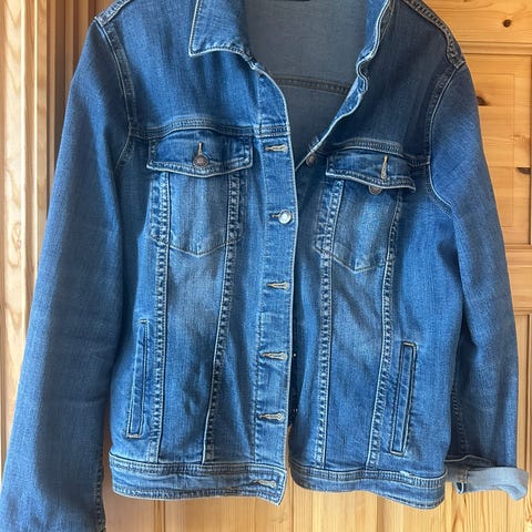 Dongeri jakke str L (mer som M) selges hbo 150,- Lite brukt. Ikke stiv dongeri, men mykere som er god på.