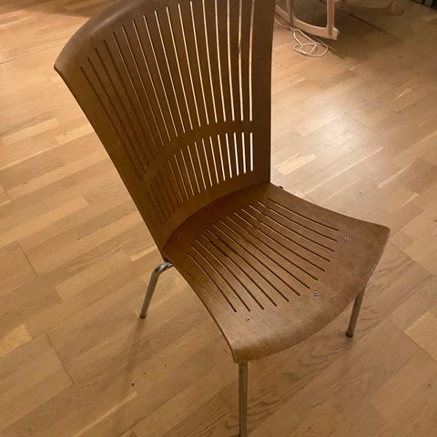 Norskproduserte Totemstoler fra Møremøbler selges, har 7 stk. Designet av Torstein Nilsen. Gammelrosa ullstoff ( kan lett trekkes om) Stål ben, treverket er jeg usikker på. Bøk? Pris pr. stk. Totemstolen er utstilt på Kunstindustrimuseet og Nordenfjelske Kunstindustrimuseet, og er et norsk designikon. Veldig sjeldne stoler med stål understell, da de fleste ble laget med treramme. Må hentes.