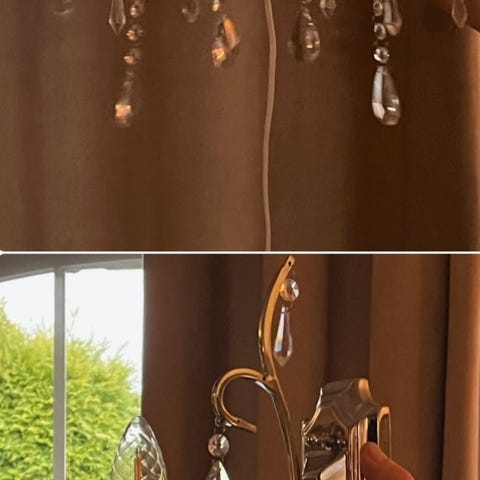 2 like, eller par prismelamper i farge sølv med skjerm en dobbel prisme lampe. Lampene er som nye, men godt brukt. Kan sendes om helt krise. Betaling på vipps.