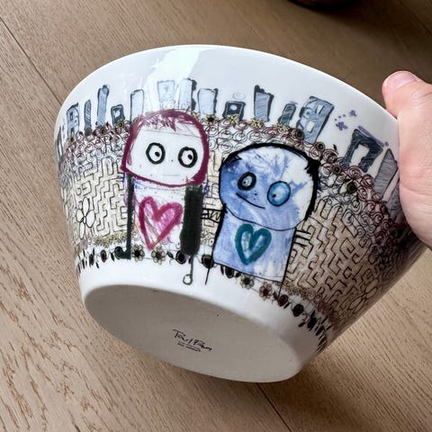 Kul og dekorativ bolle med disen av Poul Pava.