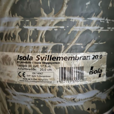 En rull Isola svillemembra selges for 1000. Ny pris Maxbo 2390