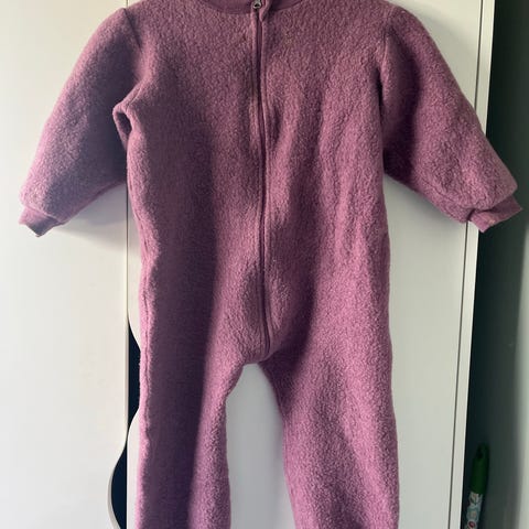 Deilig Nøstebarn ullfleecedress i strl 98. Blitt brukt litt, og den er muligens litt tynnere i stoffet nede på leggene. Men fremdeles god og fluffy i stoffet. Lite vasket, og da med Nøstebarns ullsåpe. Røyk- og dyrefritt hjem.