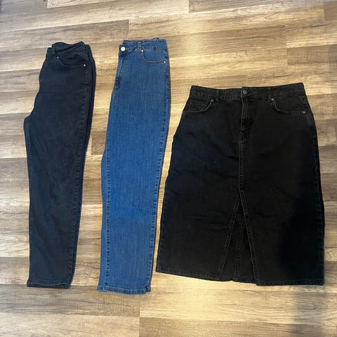 Veldig pent brukt jakke/skjørt. Brukt kun to ganger. Str.Jakke 42. Str. Skjørt 40. Farge lys grå med lysere striper