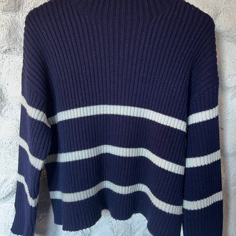 Selger denne genseren i fine farger i størrelse 170 cm. Pent brukt, men noe slitasje og et merke på en arm (se bilde). Med noen sting blir den fin. Selges derfor rimelig.