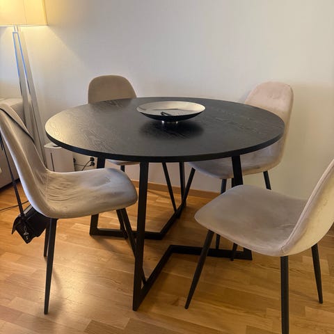 Tatt bilde av skadene på bordet som kom under transport. Disse 2 merkene ligger ganske tett så lett og vinkle mot en side som ikke er synlig.
