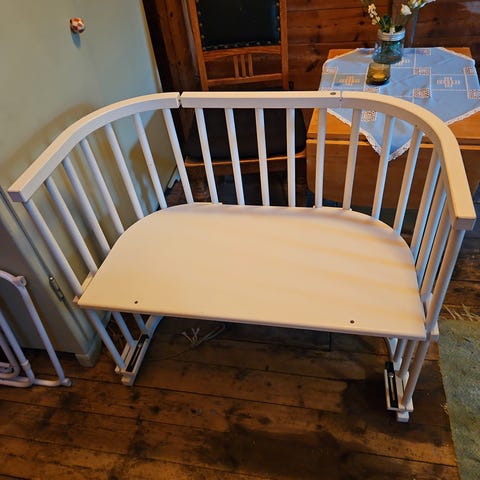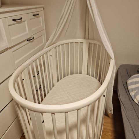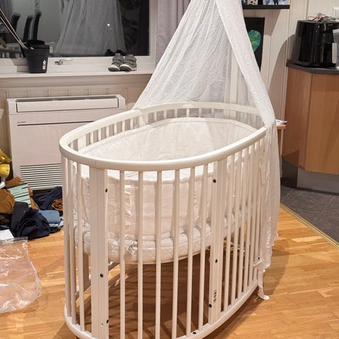 Stokke seng pent brukt til ‘gjesteovernatting’ hos besteforeldre :). Må hentes i Arendal. Kan evt demonteres av kjøper på stedet hvis ønskelig. 😁Madrass og fasongsydd laken kan medfølge uten tillegg i pris.