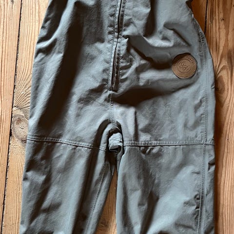 Gullkorn utebukse i størrese 98. Passer til hele året. Brukt glere ganger. En av fotstroppene har mistet.