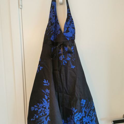 Blå nydelig kjole i str 12 som tilsvarer ca str M. Kun brukt en gang, fremstår som ny. Sjal følger med.