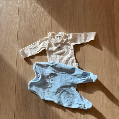 Deilig sparkebukse fra hust & claire str 50, grå med stjerner. Praktisk med knapper mellom beina og bretting nederst om ønskelig. Pent brukt til et barn en kort periode.