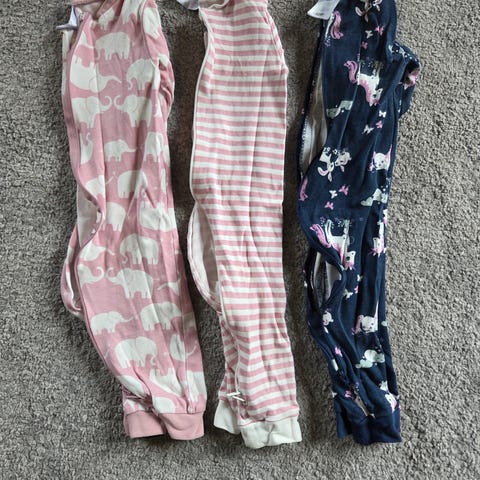 Tre grå pysjer fra Kappahl. Brukt av et barn.