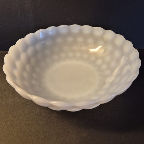 Vintage Milk Glass Old Colory Anchor Hocking bolle med åpent blondemønstet