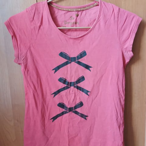 Pent topp i prikkete sateng med blonde- og volangkant foran. Toppen har sort sløyfebånd i halsen.