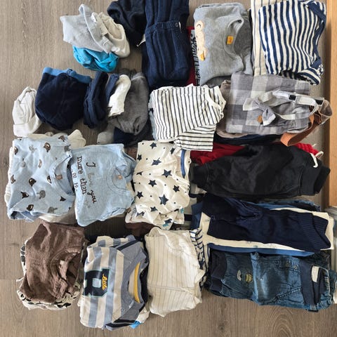 Selger en pakke med pent brukte klær til gutt i størrelse 62.
