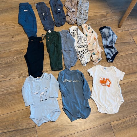 Selger en pakke med klær til gutt i størrelse 68.
