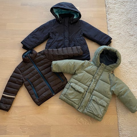 3 vinterjakker str 98/104 selges kr 40 pr stk. 100 kr samlet.