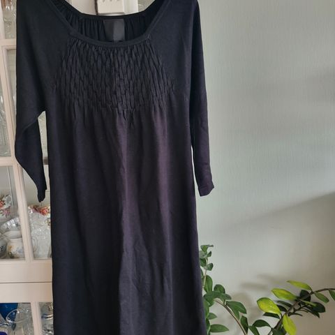 Flott kjole i kraftig stoff med velur blomster trykk. Kjolen er i svart og gul farge passer perfekt til tights, 3/4 arm. Kjolen er kun engang brukt. Det sgår 42 str på den men liten i str best passer til Str Medium og Small.