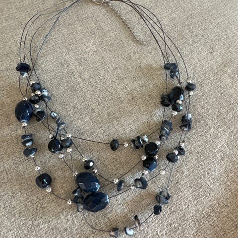 Fint blått kjede i forskjellige perler