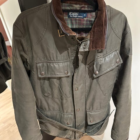 Jakke fra Belstaff selges. Fin passform med stramming i livet. Pent brukt og pelsen i hetten og rundt ermet fremstår som ny.