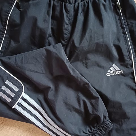 Adidas svart overtrekksbukse. To lommer foran uten glidelås.