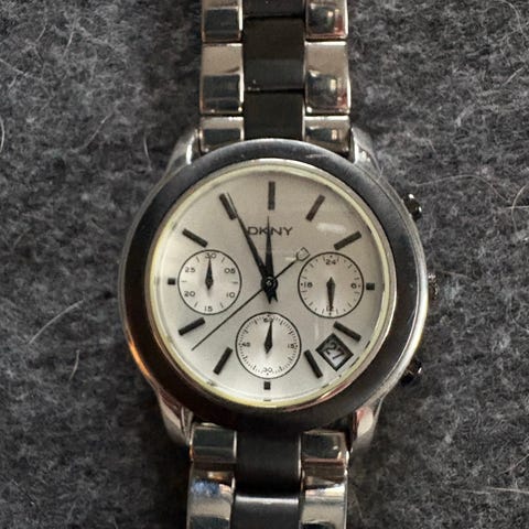 Super fint klokke fra DKNY med kristaller i perfekt stand, må ha nytt batteri siden den har stått ubrukt, selges derfor… ingen feil, følger med et ekstra ledd i tilfelle den må forlenges… kan sendes mot porto