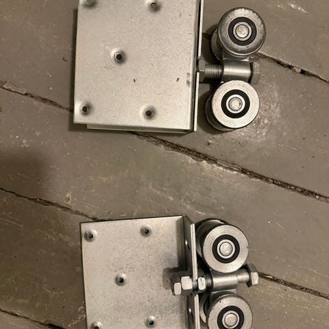 4 stk skyvedørsbeslag i krom og 1 habo skyvedørsring i krom.