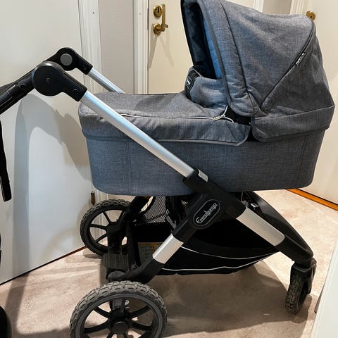 Strikket helårs vognpose i bambusviskose og ull. Super praktisk å kunne ta ut dundynen som ligger i front og få en tynnere vårpose. Med dundyne er det en god og varm vinterpose for baby.