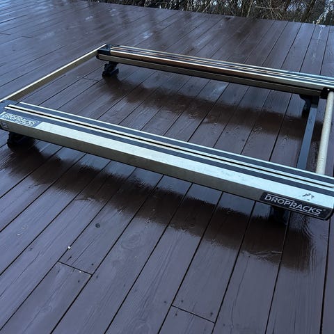 Droprack XL i bra stand og lite bruksmerker vurderes solgt pga lite bruk. Har kun vært brukt til demo/utstilling + en padletur. Passer store biler som varebiler og større SUV. Har vært brukt på Mercedes M-klasse men kan lett tilpasses andre biler ved å skifte fotsett til tak.