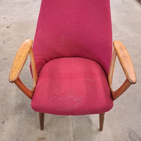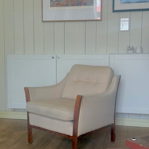 Fin lenestol selges billig mot henting på adresse. Den har noe slitasje og noen merker i trekket. Ikke prøvd å vaske av.