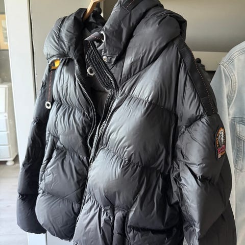 Selger min kule save the duck jakke. Ingen bruksmerker, hette kan tas av med glidelås. Varmer godt og er lett og fluffy på.