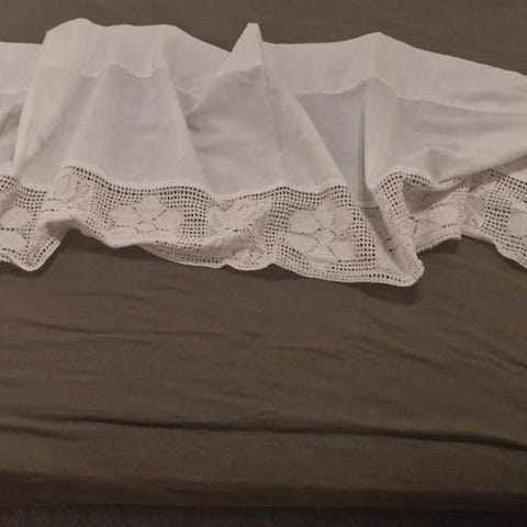Flott, eldre gardinkappe. Hvit med fine detaljer, og i godt mykt stoff.